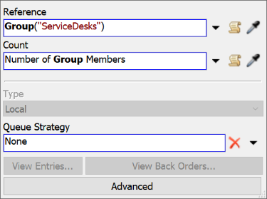 - 选中Resource: Service Desk(资源:服务台)共享资源,在属性面板中点击Reference(引用)框旁的箭头打开菜单,指向Group(组)后选择ServiceDesks(服务台组)。