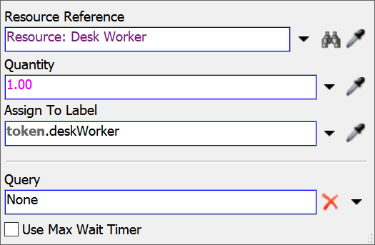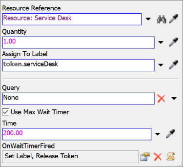 | Resource: Service Desk(资源:服务台) | 该共享资源代表业务系统中的客户服务台,需将其与之前创建的ServiceDesks(服务台组)建立关联,该组包含3D模型中的两个服务台处理器对象。 |