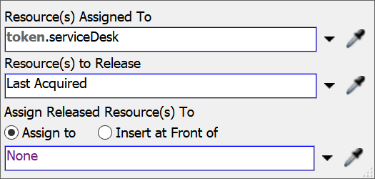 - 选中Release: Desk Worker(释放:服务人员)活动,在属性面板中点击Resource(s) Assigned To(已分配的资源)框旁的箭头打开菜单,指向Token Label(令牌标签)后选择deskWorker(服务人员)。