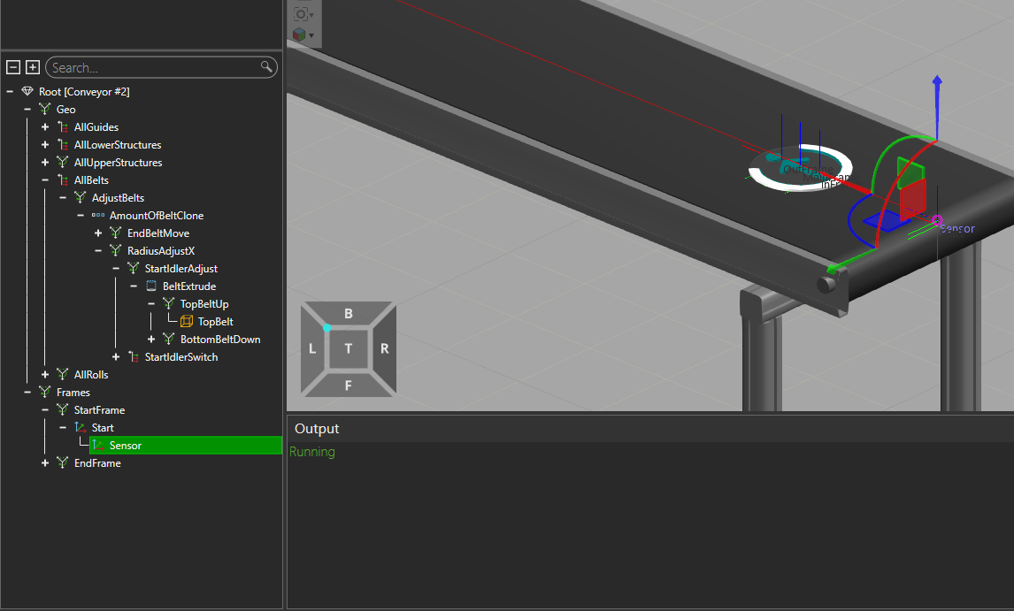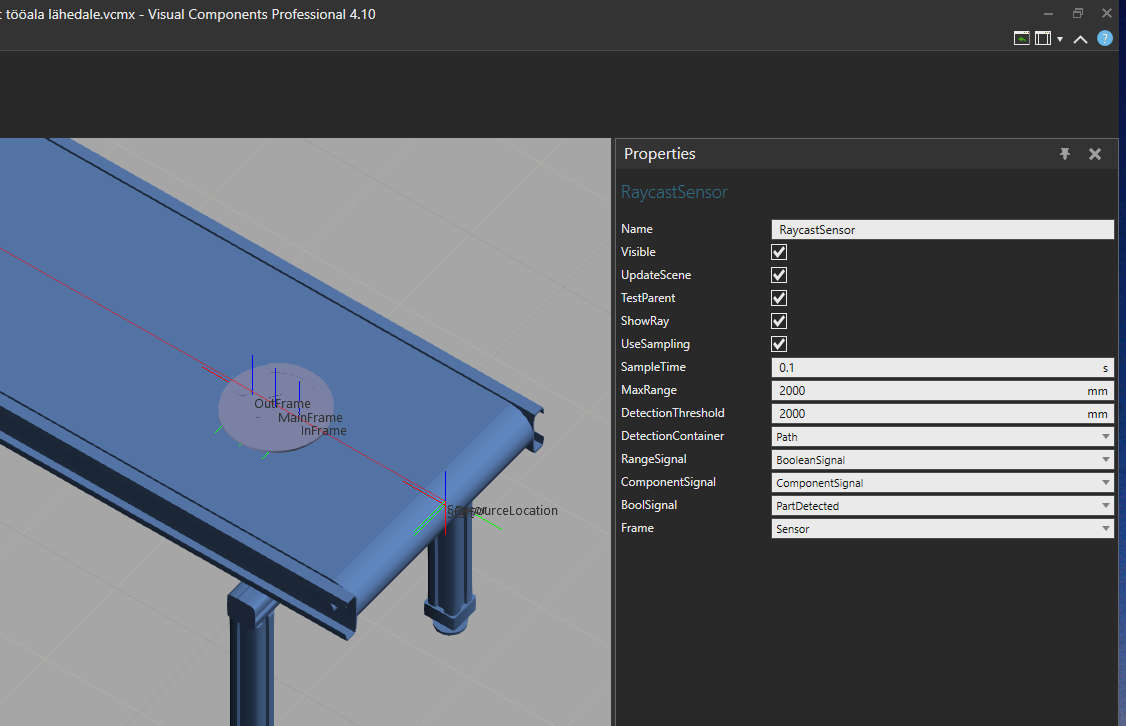 传感器传感器框架与传送带位于同一位置起始点,但经过旋转使射线指向传送带方向。已尝试: