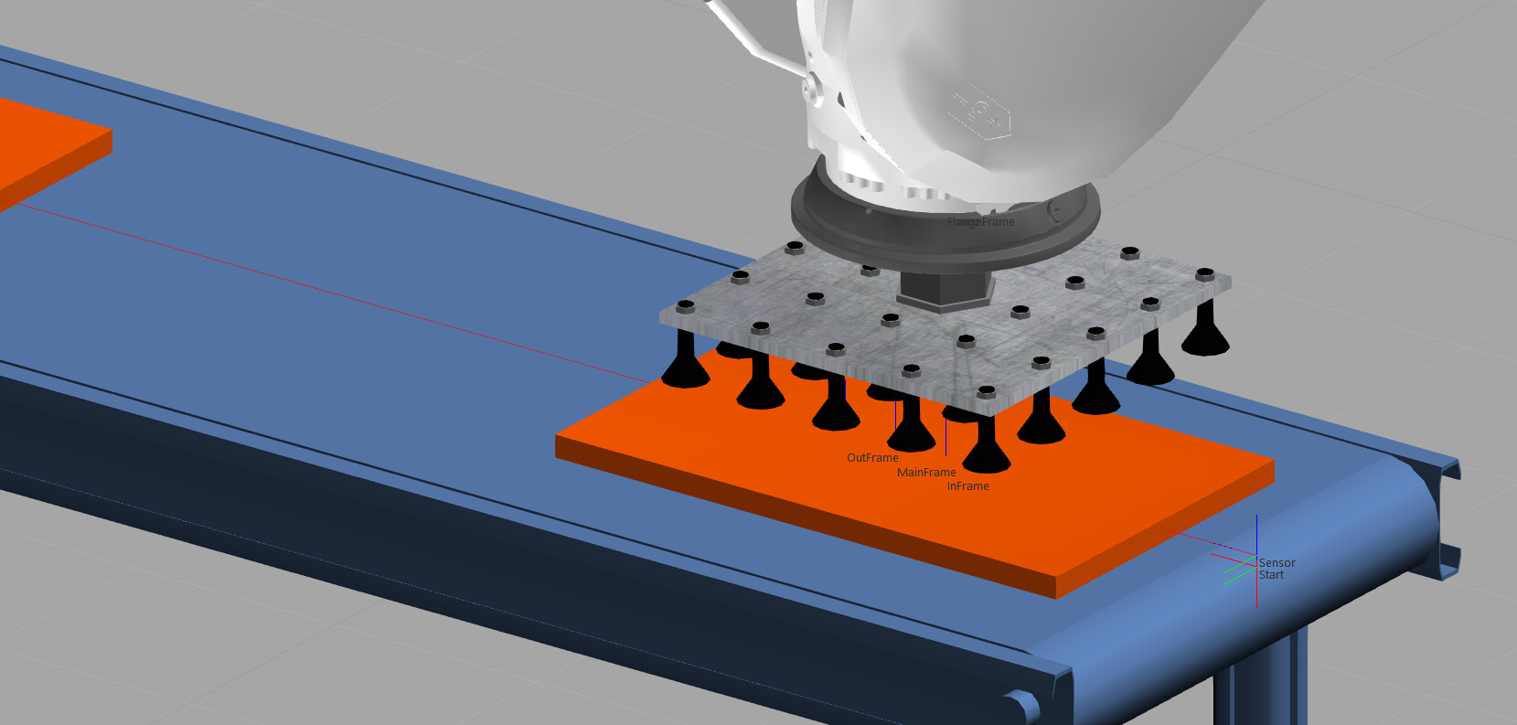 传感器框架与传送带位于同一位置起始点,但经过旋转使射线指向传送带方向。