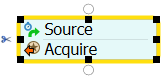 - 从库中,在共享资产组下,将一个获取资源活动拖放到源活动的顶部。请注意,这两个活动已吸附在一起,如下图所示。它们现在自动连接在一个块中(有时也称为堆叠块)。