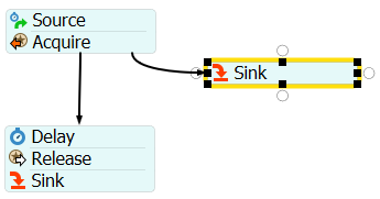 - 至此,您已尝试了所有添加活动的不同方法。使用您喜欢的方法,在释放资源活动之后添加并连接一个汇活动。