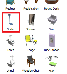 在库中,位于Healthcare组下,点击Location对象以打开菜单。点击(不要拖动)Exam Table以进入创建对象模式。在创建对象模式下,您的鼠标指针将变为创建对象图标