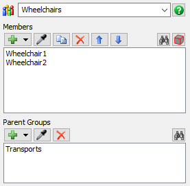 - 右键单击轮椅1以打开菜单。指向运输工具组,然后选择添加到新组以打开组属性窗口。