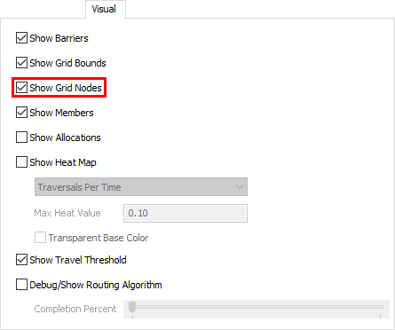 - 如果您想关闭A*导航系统的视觉引导,请双击A* 导航器以打开其属性窗口。在视觉选项卡上,清除所有复选框。