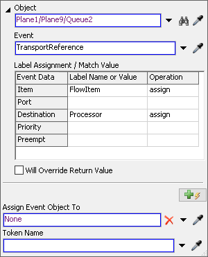 - Queue2以打开菜单。选择Queue2:运输工具引用。采样对象的名称将出现在活动旁边。在属性中的