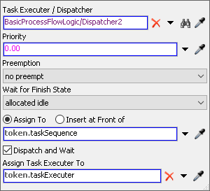 - 以打开菜单。选择BasicProcessFlowLogic/Dispatcher2。将创建装卸任务活动中的其余选项保留为默认值。单击从 Queue2 装载物品