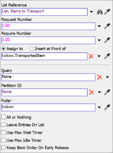 | 推送到列表:待运输项目 | 此活动将把所有在队列中的流项目推送到“待运输项目”列表。当项目被推送到列表时,它们将使用FlowItem标签保留对特定流项目的引用。 |