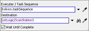 - 点击前往扫描站活动以选中它。在属性面板中,确保执行器/任务序列的默认值为token.taskSequence。