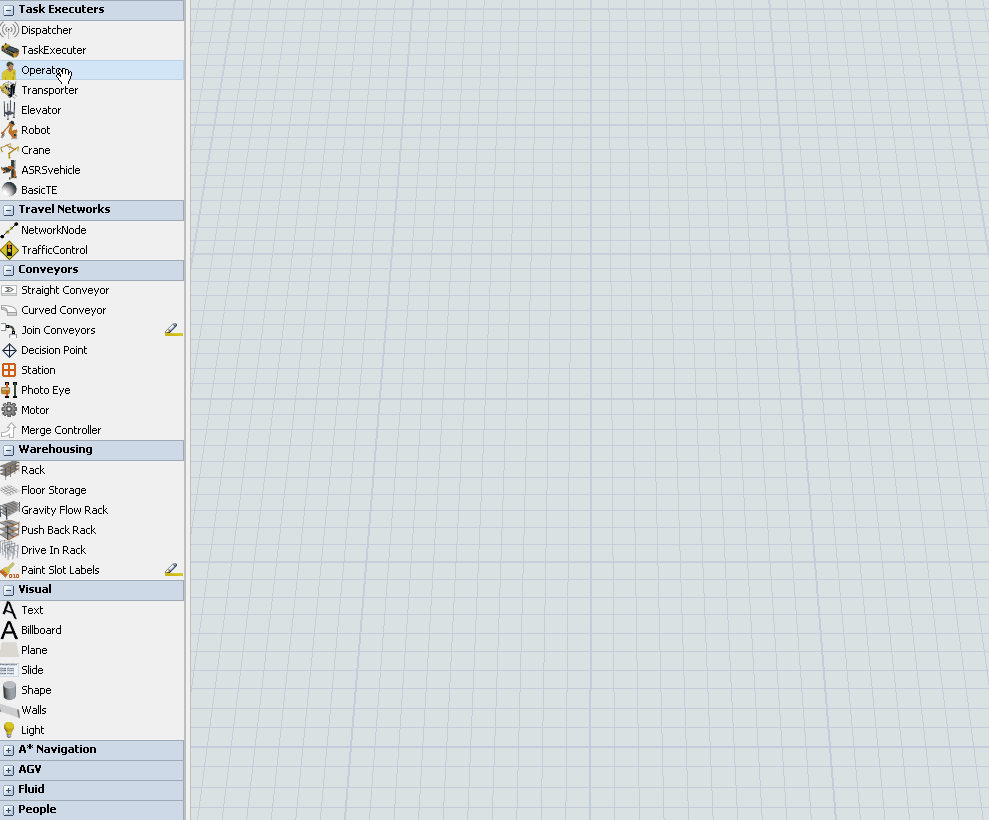 直接从模型库窗口拖拽操作员对象,将添加默认样式或上次选择的操作员样式;若先点击模型库中的Operator(操作员)选项,将弹出选择菜单,你可从中挑选操作员样式,包括男性、女性、自定义等类型。本教程中选择男性或女性操作员均可。