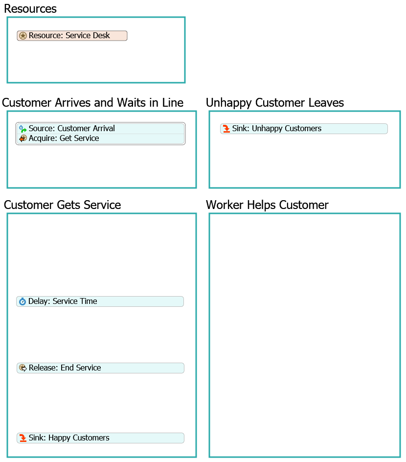 - 将Resource: Service Desk(资源:服务台)移动至Resources(资源)形状中。