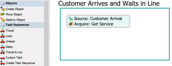 - 将包含Source: Customer Arrival(源:客户到达)的堆叠块,移动至Customer Arrives and Waits in Line(客户到达并排队)形状中。