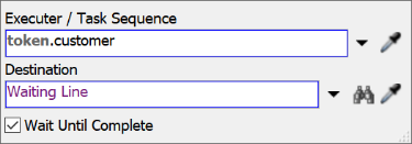 - 选中Travel: Customer to Waiting Line(移动:客户至等待队列)活动,在属性面板中点击Executer / Task Sequence(执行器/任务序列)框旁的箭头打开菜单,指向Token Label(令牌标签)后选择customer(客户)。