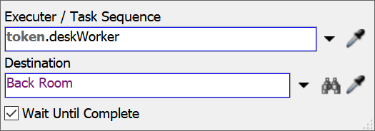 - 在Worker Helps Customer(服务人员提供服务)形状中,选中Travel: Desk Worker to Back Room(移动:服务人员至后台)活动,在属性面板中点击Executer / Task Sequence(执行器/任务序列)框旁的箭头打开菜单,指向Token Label(令牌标签)后选择deskWorker(服务人员)。