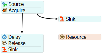 - 有些活动可以有多个出站连接线,例如获取资源活动。从获取活动创建第二条出站连接线,并将其连接到另一个汇活动,如下图所示。