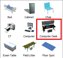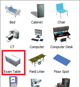 在库中,位于Healthcare组下,点击Location对象以打开菜单。点击(不要拖动)Exam Table以进入创建对象模式。在创建对象模式下,您的鼠标指针将变为创建对象图标
