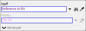 - 点击员工资源的图标以打开其 属性。点击员工框旁边的箭头 打开菜单。指向先前员工资源,然后选择注册护士,使该字段现在显示为引用注册护士。