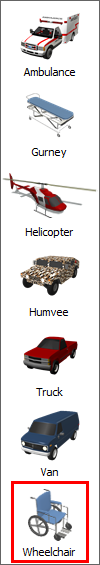 在库中的医疗保健组下,单击运输工具对象以打开菜单。单击(不要拖动)轮椅以进入创建对象模式。当您处于创建对象模式时,鼠标指针