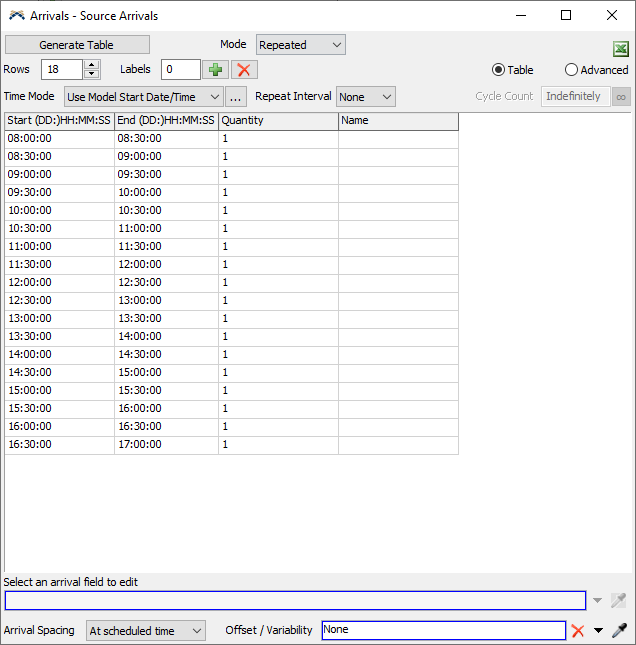 现在你已经构建并测试了一个相当复杂的仿真模型,是时候增加通过医疗诊所模型的病人数量了。在这一步中,你将更改到达流程流中日期时间源活动的患者到达计划。在无需预约的诊所中,患者通常根据一天中的不同时间以不同的频率到达。日期时间源活动允许你定义一天中不同时间段内到达的患者数量。