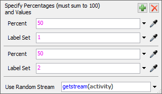 - 点击创建患者活动的图标以打开其属性。点击标签集框旁边的箭头以打开菜单。选择按百分比分配标签集。