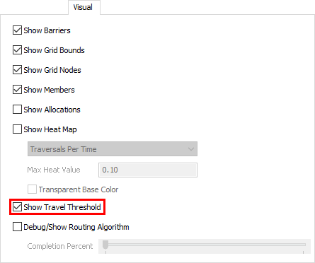 - 双击A* 导航器以打开其属性窗口。在视觉选项卡上,勾选显示移动阈值复选框。点击确定按钮保存更改并关闭窗口。