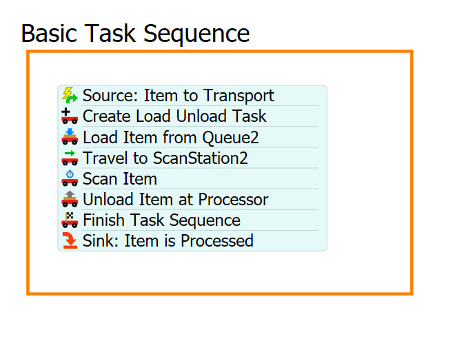 | 在 Queue2 装载物品 | 此活动告诉操作员需要拾取哪个流物品以及其位置。它将使用taskSequence标签来指定此任务是先前创建的任务序列的一部分。它将使用 FlowItem 标签来指定要装载到运输工具上的物品。 |