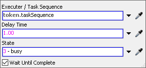 - 15. 点击延迟活动以选中它。在快速属性中的延迟时间框中,删除当前文本 并输入1.00。确保执行器 / 任务序列框显示为token.taskSequence。将状态框保持为3- 繁忙, 这应该是默认设置。