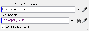 - 点击从队列装载物品活动以选中它。在属性面板中,确保执行器/任务序列的默认值为token.taskSequence。